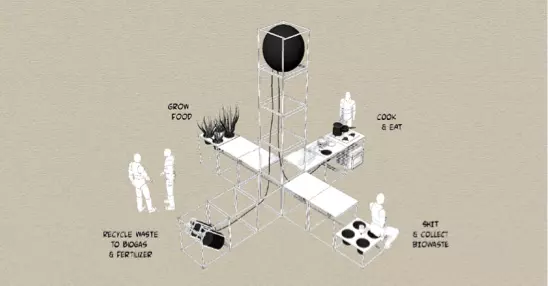 Es soll eine „Do-It-Yourself-Biogas-Anlage im Kleinformat“ erstellt werden – speziell für den Einsatz in lokalen Gemeinschafen im Sinne der Kreislaufwirtschaft. Sie soll im Gängeviertel installiert und sowohl als Vorführ- und Lernobjekt für soziokulturelle Initiativen, als auch bei öffentlichen Veranstaltungen regelmäßig präsentiert werden. Die Anlage kann aus mitgebrachten Bioabfällen, die in der Nachbarschaft anfallen, Gas für die Nutzung in einem Gaskocher und Dünger für die Gärten der Umgebung erzeugen.