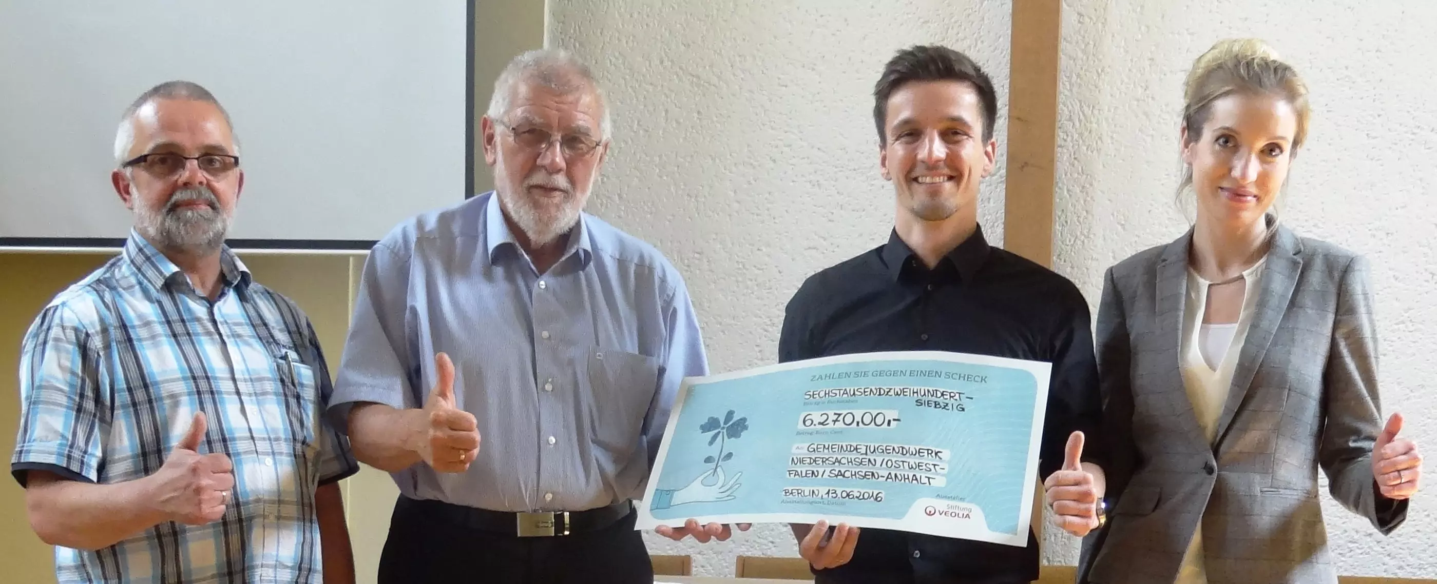 Veolia Stiftung und MIDEWA Wasserversorgungsgesellschaft in Mitteldeutschland mbH überreichen Spendenschecks an das Gemeindejugendwerk Niedersachsen/ Ostwestfalen/ Sachsen-Anhalt